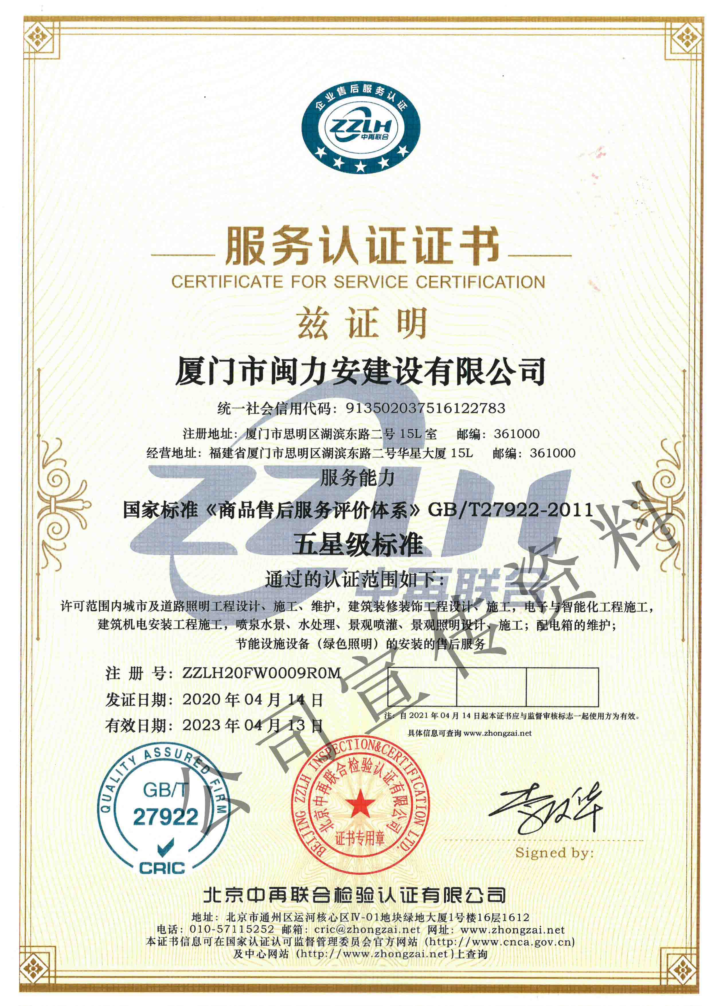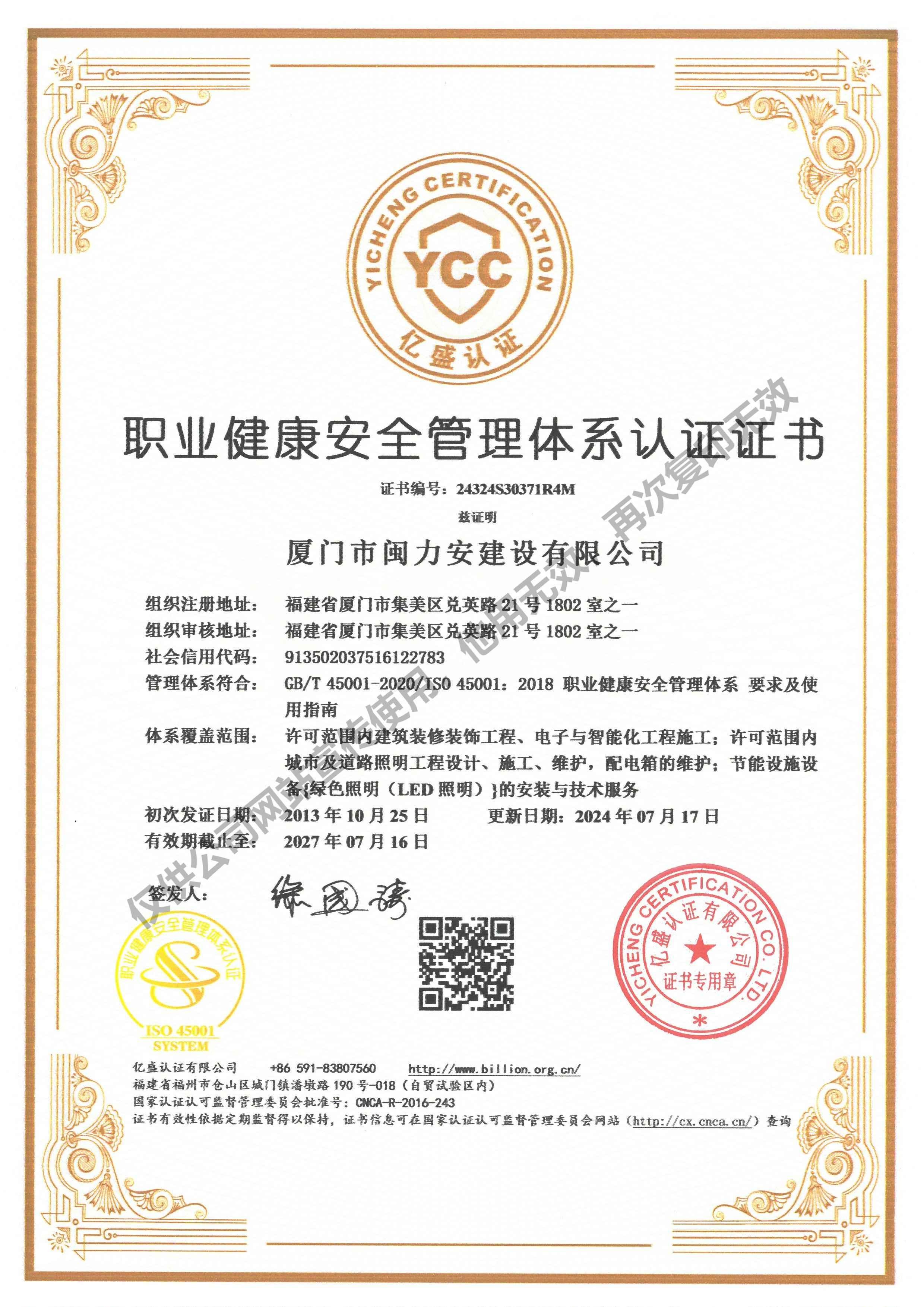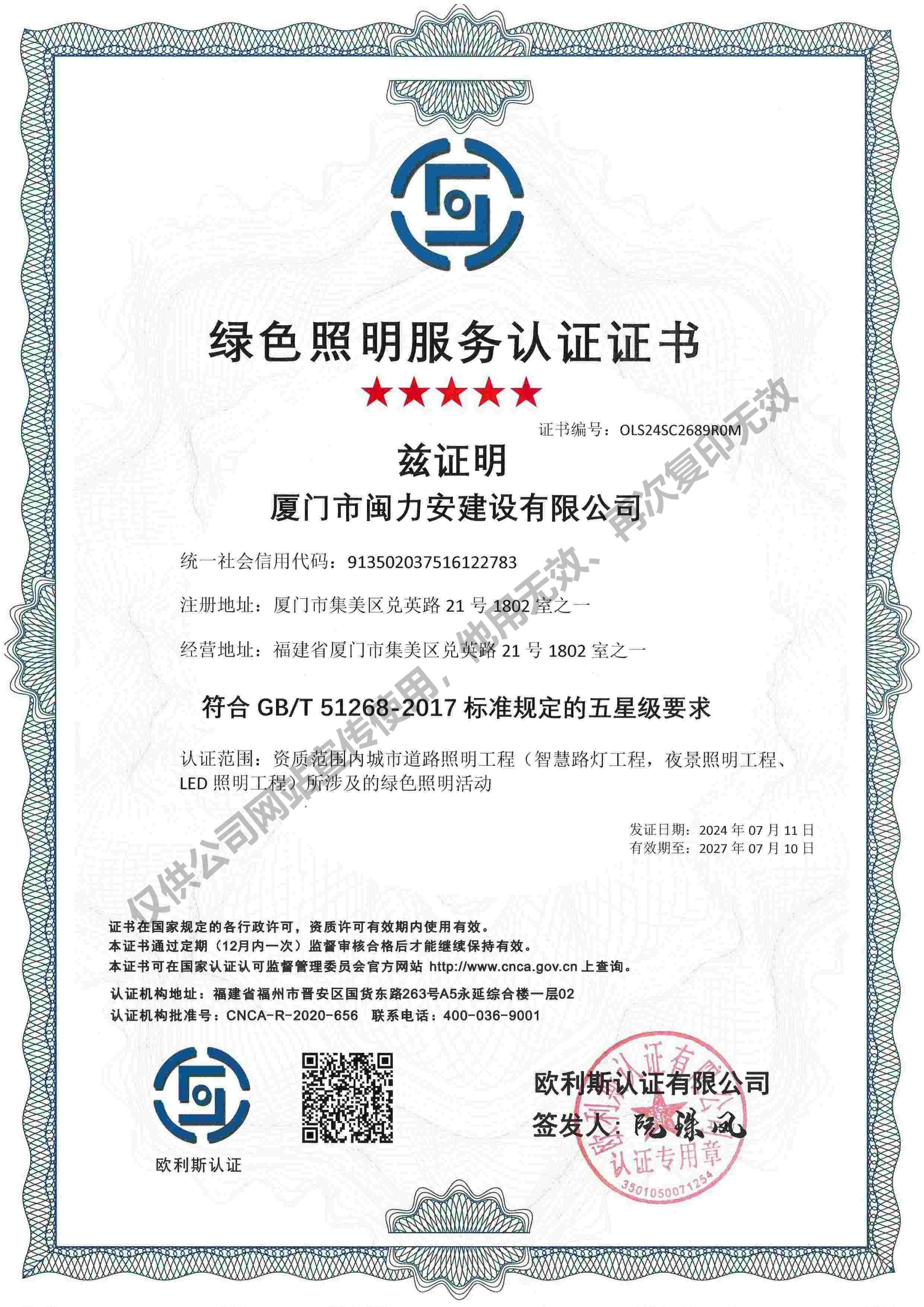 廈門市閩力安建設(shè)有限公司成立于2003年,公司取得市政公用工程施工總承包貳級(jí)、建筑裝修裝飾工程專業(yè)承包壹級(jí)、城市及道路照明工程專業(yè)承包壹級(jí)、電子與智能化工程專業(yè)承包貳級(jí)、消防設(shè)施工程專業(yè)承包貳級(jí)、電力工程施工總承包叁級(jí)、建筑機(jī)電安裝工程專業(yè)承包叁級(jí)、輸變電工程專業(yè)承包叁級(jí)、環(huán)保工程專業(yè)承包叁級(jí)、照明工程設(shè)計(jì)專項(xiàng)甲級(jí)、建筑裝飾工程設(shè)計(jì)乙級(jí)、施工勞務(wù)等資質(zhì)的綜合型企業(yè),公司于2013年通過了ISO9001質(zhì)量體系認(rèn)證,ISO14001環(huán)境管理體系認(rèn)證,OHSAS18001職業(yè)健康安全管理體系認(rèn)證。
